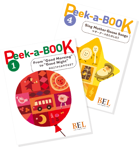 BELは,ご自宅で「英語の絵本,歌」の世界を楽しむことができます。CDやスマートフォンで音声を聴きながら,お子さまに絵本を見せたり,歌を歌ってあげたり,手遊びを一緒にして子育てタイムをお楽しみください。